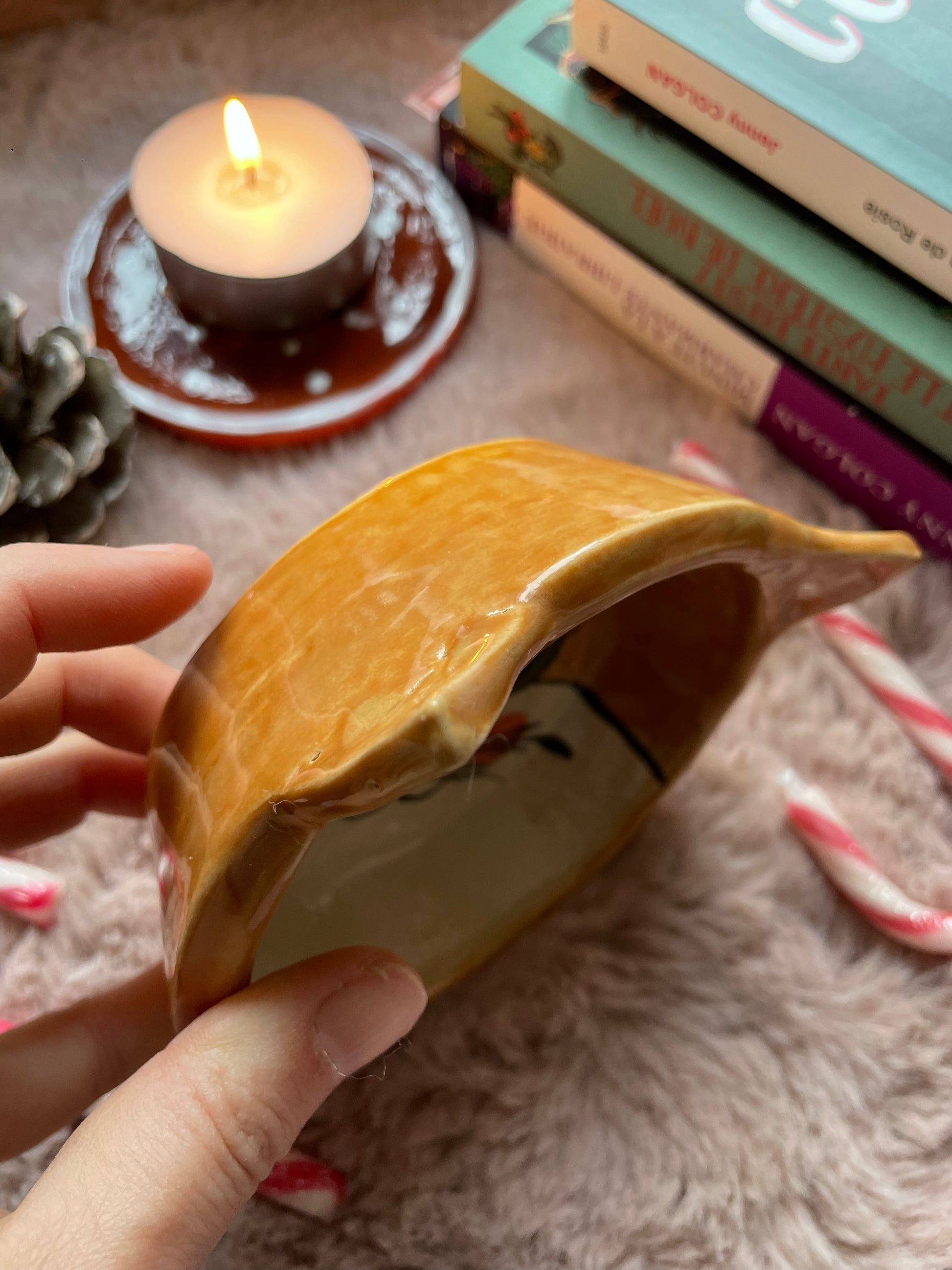 Pièce unique créée en grès moulé la main puis suite à une première cuisson appelée biscuit, j’ai illustré à la main au grès de mon inspiration…. Elle a ensuite été émaillée par mes soins puis a subit une seconde cuisson.